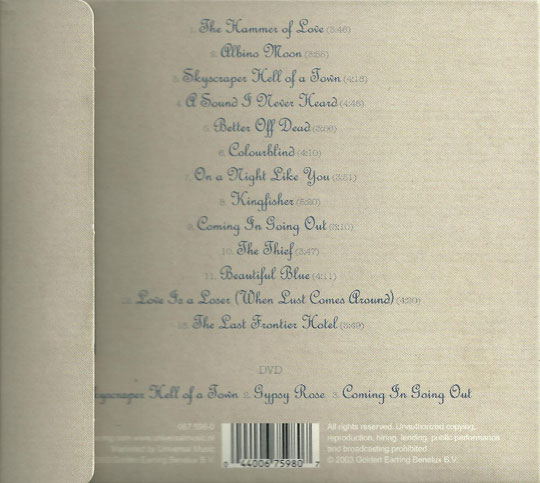 Backside shows 17 tracks, in the wrong order. The Thief is missing on the list. |