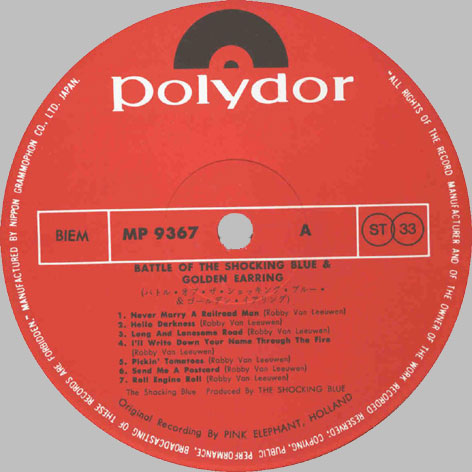 the bands Shocking Blue / Golden Earring Polydor MP9367/68 21 tracks Label 1 / Label 2 |