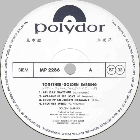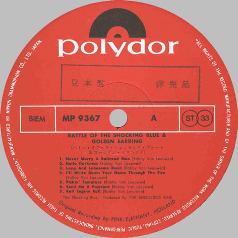 the bands Shocking Blue / Golden Earring Polydor MP9367/68 21 tracks Label 1 / Label 2 PROMOTIONAL COPY |