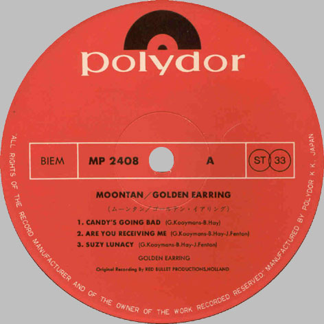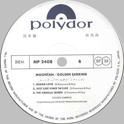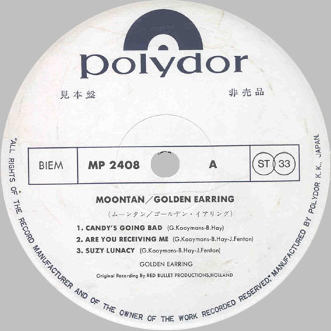 | 1973 Moontan Polydor MP 2408 6 tracks Label 1 / Label 2 Fold out cover |