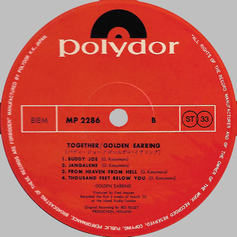 | 1972 Together Polydor MP 2286 8 tracks Single sleeve |
