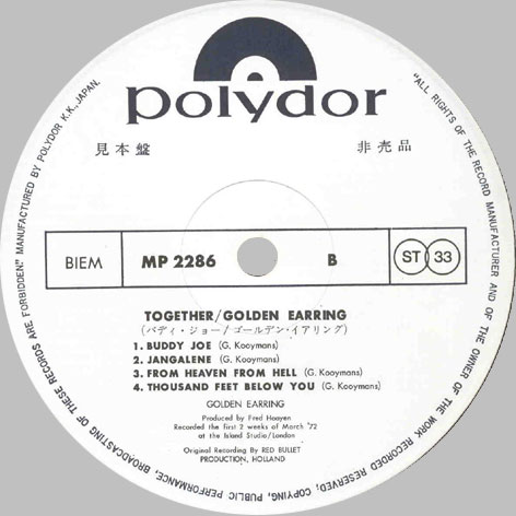 | 1972 Together Polydor MP 2286 8 tracks Single sleeve PROMOTIONAL COPY |